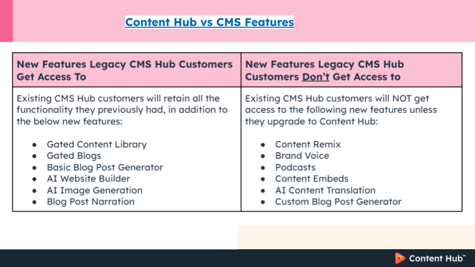 Mit der Einführung von Content Hub wurden von HubSpot Entscheidungen über die Pakete getroffen, um sie bestmöglich auf die Anwendungen der einzelnen Produktlinien abzustimmen. Dies gilt nur für NEUE Kunden, die nach dem 3. April kaufen. Bestehende Kunden behalten ihre Funktionalität.