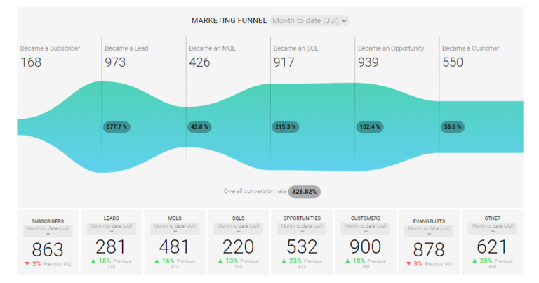 Das untenstehende Bild zeigt einen Funnel auf, vom Website Traffic bis zum daraus generierten Kunden.