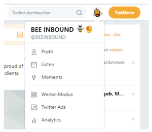 Unter deinem Twitter-Logo auf der rechten Seite im Menü versteckt sich der Link zu deinen Analytics-Daten. Leider sind diese im Vergleich zu Facebook deutlich weniger umfangreich.