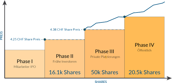 Durch den frühen Einstieg besteht das Potenzial für einen deutlichen Anstieg des Aktienkurses. Eine Investition von 10.000 CHF, die heute investiert wird, könnte potenziell 30.000 CHF wert sein.