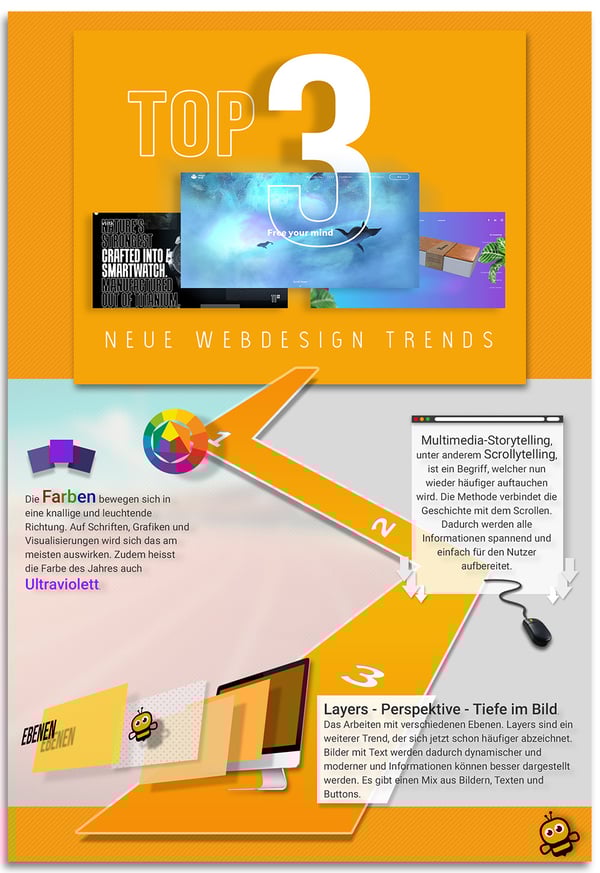 Unsere Top 3 Website Design Inspirations haben wir in dieser Infografik nochmals für dich zusammengefasst: