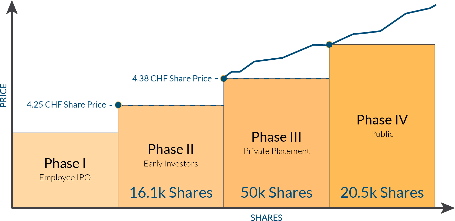 By getting in early, there is the potential for a significant increase in the share price. An investment of CHF 10,000 made today could potentially be worth CHF 30,000.