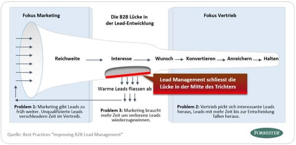 Leadgenerierung und Lead-Management passen sich dem neuen Informations- und Entscheidungsverhalten der Konsumenten an. Bevor dieser sein Kaufinteresse signalisiert, informiert er sich im Internet ausgiebig über ein Produkt oder einen Anbieter. Erhalten Interessenten hier nicht die in der aktuellen Phase benötigten Informationen, wandern sie ab.