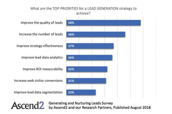 Die Verbesserung der Qualität der Leads und die Erhöhung der Anzahl der Leads sind die obersten Prioritäten bei einer Leadgenerierungs-Strategie für 58% bzw. 46% der Marketing-Influencer.