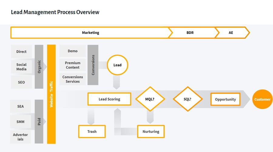 Beim Lead-Management verbleiben Leads, die noch nicht kaufbereit sind, so lange im System, bis deren Interesse durch die entsprechende Begleitung und Pflege so weit fortgeschritten und deren Qualifizierung so deutlich ist, dass ein Gespräch mit einem Vertriebsmitarbeiter sinnvoll ist. Dabei gilt: Der richtige Content muss zur richtigen Zeit an den richtigem Empfänger geliefert werden.