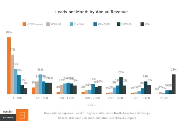 Anzahl der generierten Leads pro Monat nach Jahresgewinn und Grösse des Unternehmens