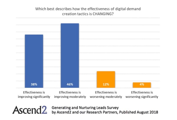 Die Effektivität der Lead-Management-Taktiken ändert sich zum Besseren für insgesamt 84% der Marketing-Influencer, wobei 38% die Veränderung der Effektivität als signifikant beschreiben.