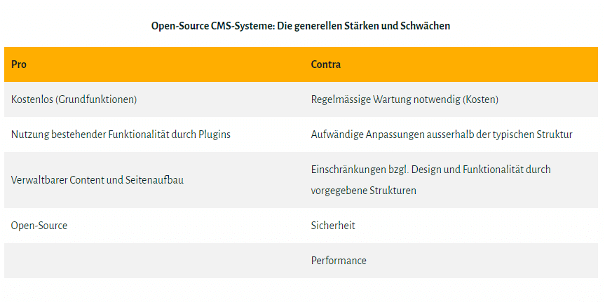 Damit du dir einen Überblick der verschiedenen CMS Systeme verschaffen kannst, haben wir hier einen Vergleich von Open Source CMS und Custom CMS zusammengestellt: